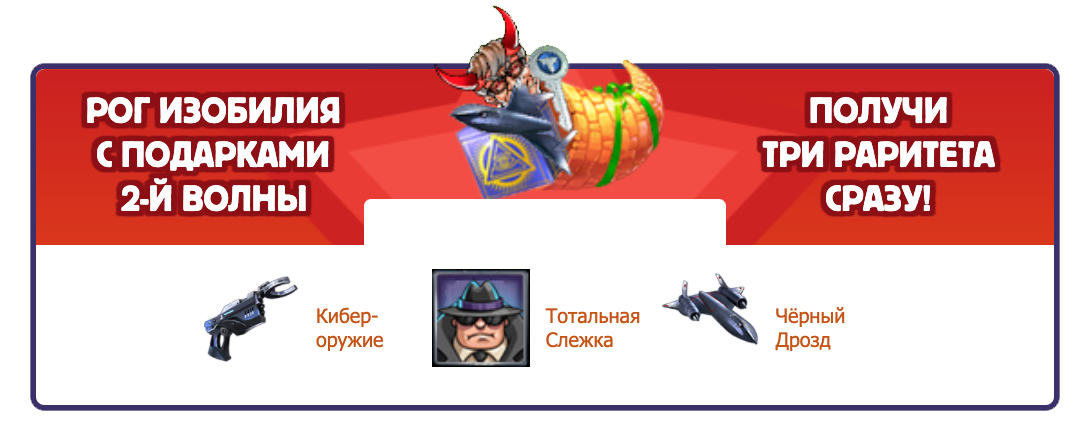 Рог изобилия — это предмет, который содержит в себе все раритеты текущей волны подарков сразу в максимальной модификации и является желанным призом для любого игрока!