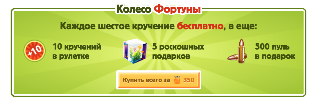 Сыграй в Весеннюю Рулетку и получи антикризисные запасы! Чем больше твои запасы, тем круче ты сам! C каждой открытой заначкой твои запасы увеличиваются, а вместе с ними растут и твои боевые рейтинги.
