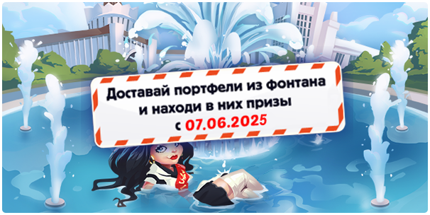 Используйте аттестаты из подарков, чтобы пробраться к фонтану и получить шанс стать обладателем потрясающих призов, спрятанных в школьных портфелях! Торопитесь, акция продлится только до 16 июня (15.06.2025 23:59)!
